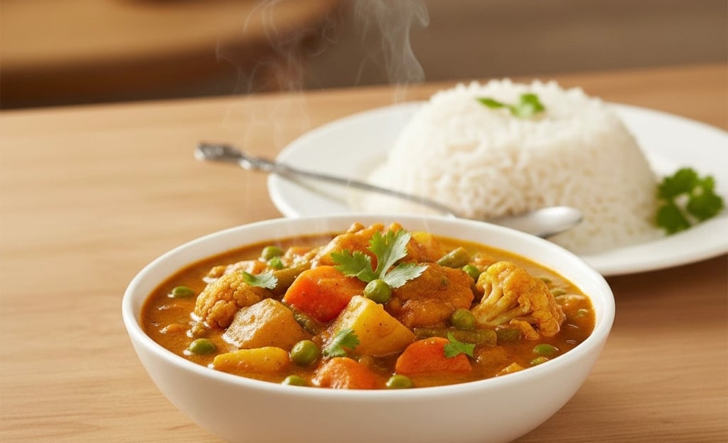 A versatile everyday mixed-vegetable curry made with NOMIX Kitchen King Masala. One masala, many vegetables — balanced flavour with a comforting homestyle finish.