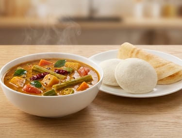 A traditional South Indian Sambhar made with NOMIX Sambhar Masala. Perfectly balanced lentils, vegetables, tangy tamarind, and aromatic tempering — authentic taste with foolproof steps.